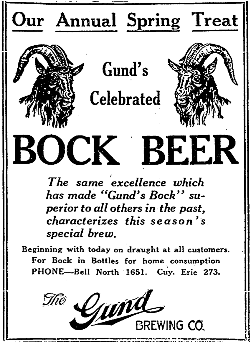 Routine advertising touted local beer varieties. Bock beer in early spring made an annual appearance. | Date: April 10, 1914 | Source: Cleveland Plain DealerDownload Original File