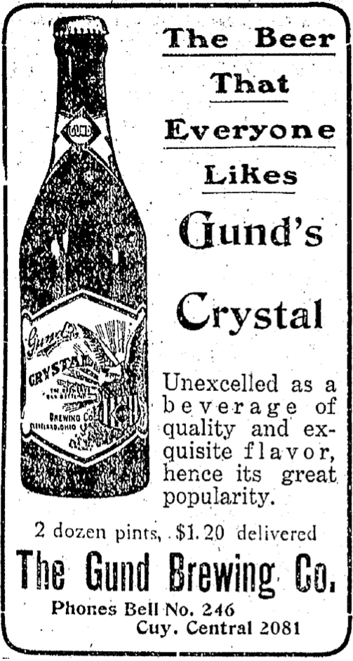 "Gund's Crystal Lager Advertisement" appears in: Gund Brewery