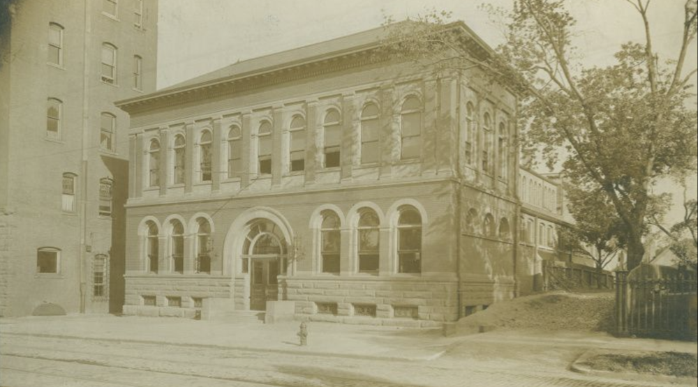 The historic building was designed in 1897 by John Eisenmann, who with architect George Smith co-designed the Arcade in downtown Cleveland. The Cinecraft Building originally served as home to Cleveland Public Library's West Side Branch, which was the first branch library of the Cleveland Public Library. Later, the building's interior was substantially altered and remodeled after it was purchased by the Chamber of Industry, an organization founded to advance the interests of West Side businessman. In the 1930s and early 1940s, the building, which featured a large auditorium, was owned by several different organizations which used it as a headquarters. In 1947, it was purchased by Cinecraft Productions, Inc. and converted into a film studio. This photo was taken in circa 1900 when the building housed the West Side branch of Cleveland Public Library. | Source: Cleveland Public Library, Photograph CollectionDownload Original File