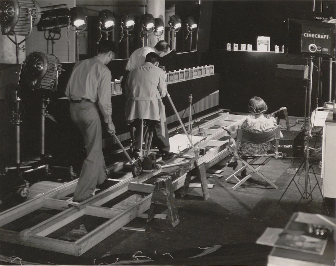 At work in the studio ID: 11682 | This file appears in: Cinecraft Productions In this 1941 photograph, Ray (center) and Betty Culley are seen working on the filming of an industrial movie for Hercules Powder Company, titled "Our Part of the Job." | Source: Hagley Museum and Library, Cinecraft Productions Collection Download Original File SourceHagley Museum and Library, Cinecraft Productions Collection "At work in the studio" appears in: Cinecraft Productions
