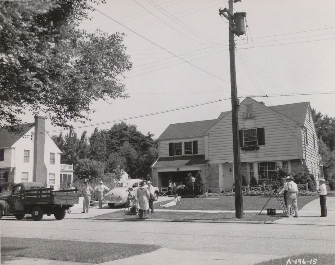 Ray and Betty Culley often adapted and used their personal items in industrial films that they produced. And that included their house at 21271 Morewood Parkway in Rocky River. In 1948, the house was used in the shooting of the film "Miracle on Mulberry Street," an industrial film sponsored by Seiberling Rubber Company. | Source: Hagley Museum and Library, Cinecraft Productions CollectionDownload Original File