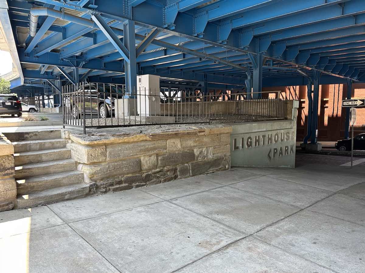The Lighthouse Site Today ID: 11805 | This file appears in: Cleveland Harbor Lighthouse The Main Avenue Bridge looms over the property upon which the Cleveland Harbor Lighthouse stood. | Creator: Chris Roy | Date: 2023 Download Original File CreatorChris RoyDate2023 "The Lighthouse Site Today" appears in: Cleveland Harbor Lighthouse