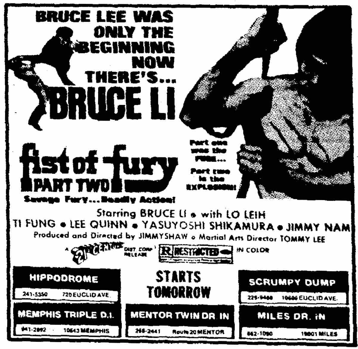 During its waning years as office tenants had left and movie-goers dwindled, the Hippodrome screened a number of exploitation films to attract viewers. This movie listing from 1979 boasts a "Bruce Li" film hoping to attract Bruce Lee fans. | Date: October 4, 1979 | Source: The Plain DealerDownload Original File