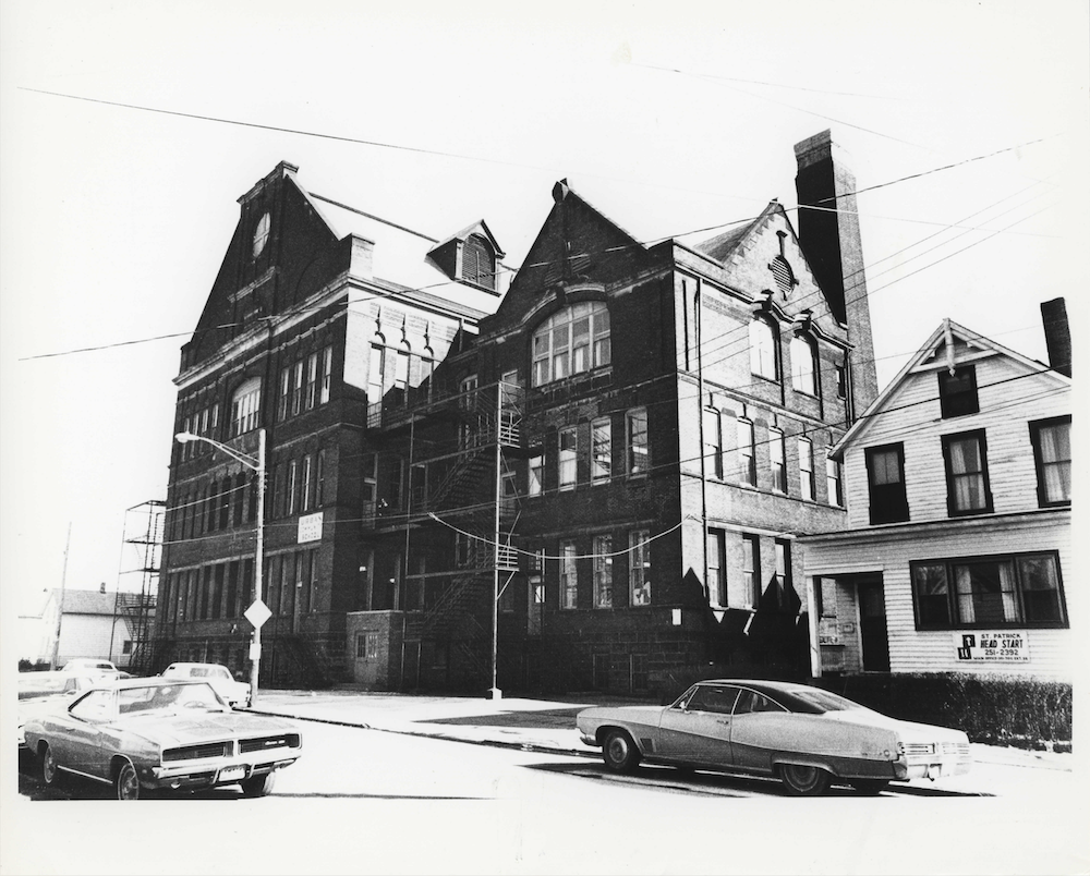 In 1968, St. Patrick School closed after its merger with St. Malachi School to form the Urban Community School. The cost to preserve the building being too much for the St. Patrick parish, the building was razed four years after this photo was taken. | Creator: City of Cleveland for National Register of Historic Places | Date: 1974Download Original File