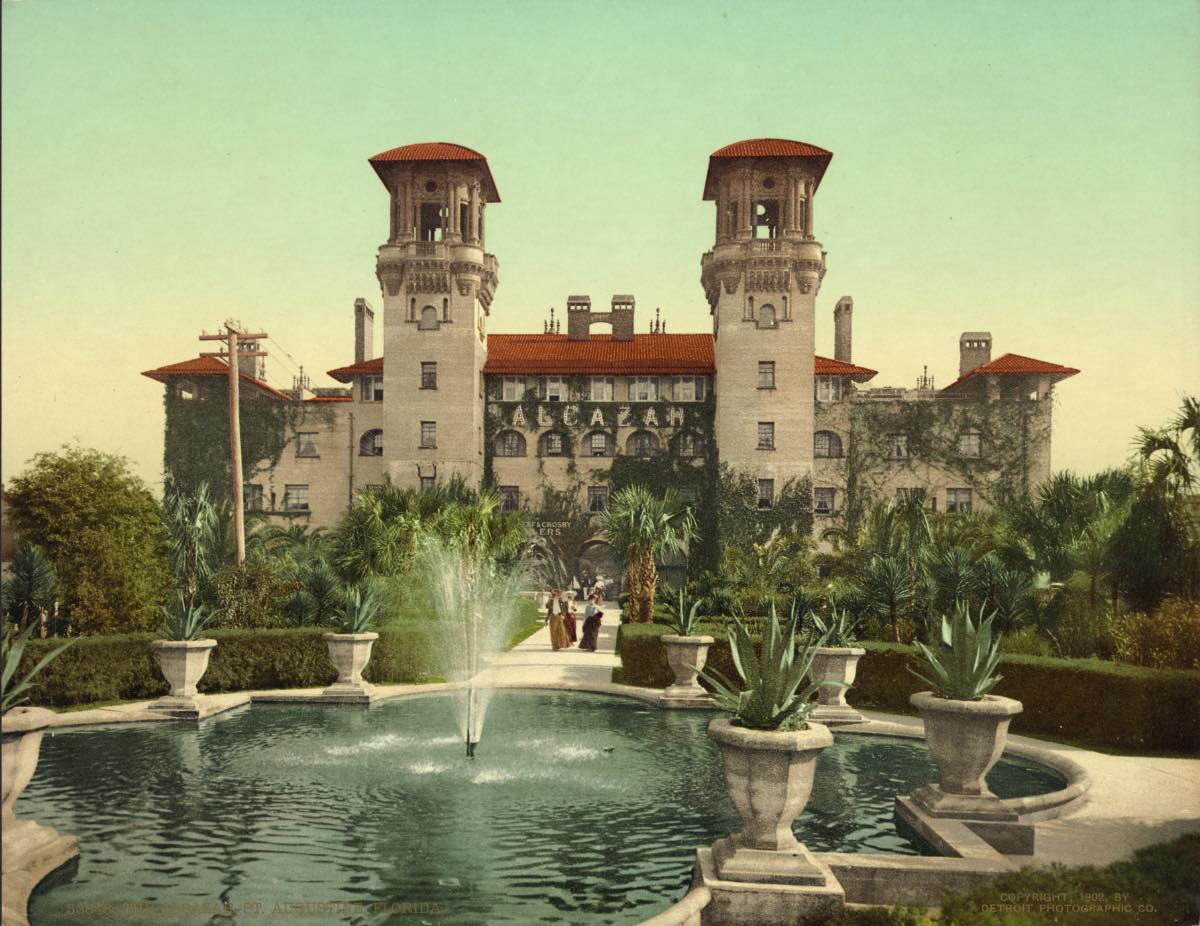 In 1888, Henry Flagler opened the Alcazar Hotel in St. Augustine, Florida, as one of two grand Spanish Revival–style hotels in the Atlantic beachfront city. The original Alcazar, whose Arabic name means castle, inspired the hotel of the same name in Cleveland Heights. | Creator: Detroit Publishing Company | Date: ca. 1902 | Source: Library of Congress Prints and Photographs DivisionDownload Original File