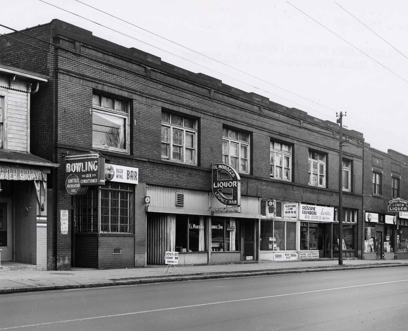 Pierson and his business partner Rodger Price put up the capital to help Black bowling league organizer Elmer Reed open United Recreation, Cleveland's first Black-owned bowling lanes, in 1941. United Recreation was located in a business block at Cedar and East 82nd, next door to El Morocco Lounge Bar, a longtime Green Book–listed business. | Creator: City of Cleveland, Board of Zoning Appeals | Date: 1961 | Source: Cleveland Public Library, Photograph CollectionDownload Original File