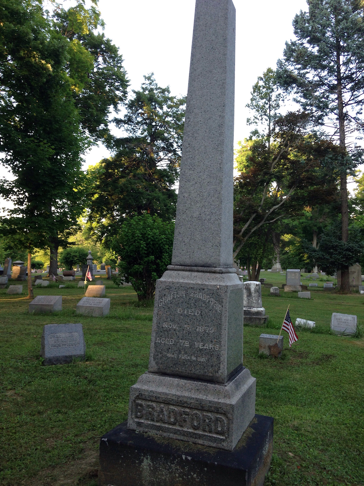 Grafton Bradford Monument ID: 11966 | This file appears in: Bradford House In 1851, Grafton and Charlaine Bradford and their children moved from Newburgh Township to Ravenna in Portage County. Grafton died in 1879 and is buried in Maple Grove Cemetery in Ravenna. | Source: Jean on findagrave.com Download Original File SourceJean on findagrave.com "Grafton Bradford Monument" appears in: Bradford House