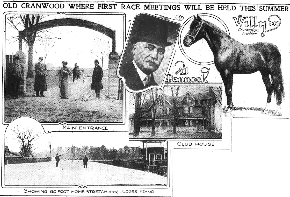 On April 20, 1913, the Cleveland Plain Dealer published a story about the new harness race track that Alvin Pennock was opening on the grounds of "Old Cranwood." These photos of Pennock, the track, and of the Corning House, accompanied that article. | Date: 1913 | Source: Cleveland Public Library, Digital Newspaper CollectionDownload Original File
