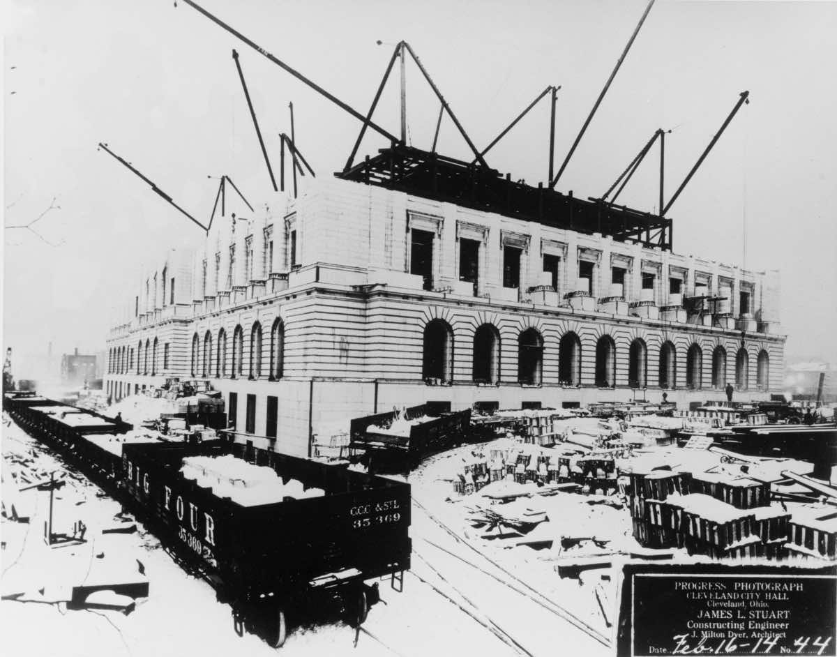 Under Construction ID: 12058 | This file appears in: Cleveland City Hall In this view, Big Four Railroad gondolas bear construction materials for the City Hall project. | Creator: Historic American Buildings Survey | Date: February 16, 1914 | Source: Library of Congress, Prints and Photographs Division Download Original File CreatorHistoric American Buildings SurveySourceLibrary of Congress, Prints and Photographs DivisionDateFebruary 16, 1914 "Under Construction" appears in: Cleveland City Hall