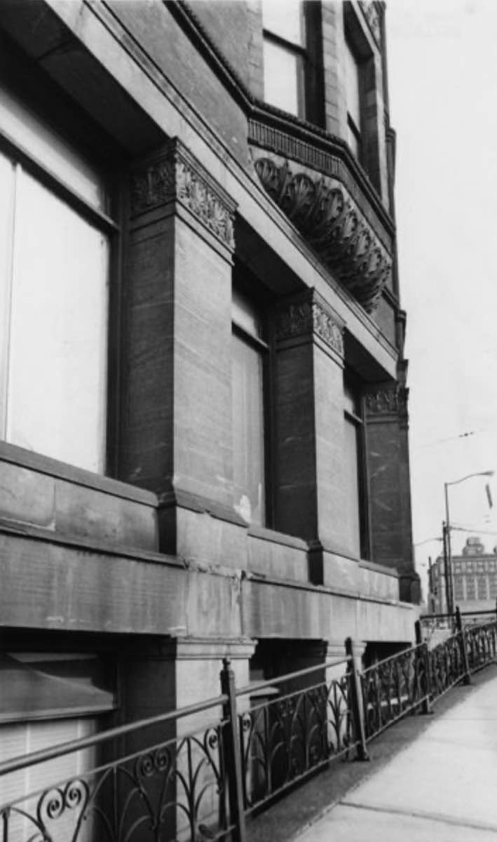 Unlike later skyscrapers, the Western Reserve Building's exterior walls are of thick, load-bearing masonry. The 1890s were the last decade in which this older manner of constructing office buildings persisted. Even this building incorporated the use of iron columns on its interior structure, a mark of the growing embrace of steel-frame construction that transformed skyscraper design. | Creator: Bill Nehez | Date: November 15, 1973 | Source: Cleveland Memory, Michael Schwartz Library Special Collections at Cleveland State UniversityDownload Original File