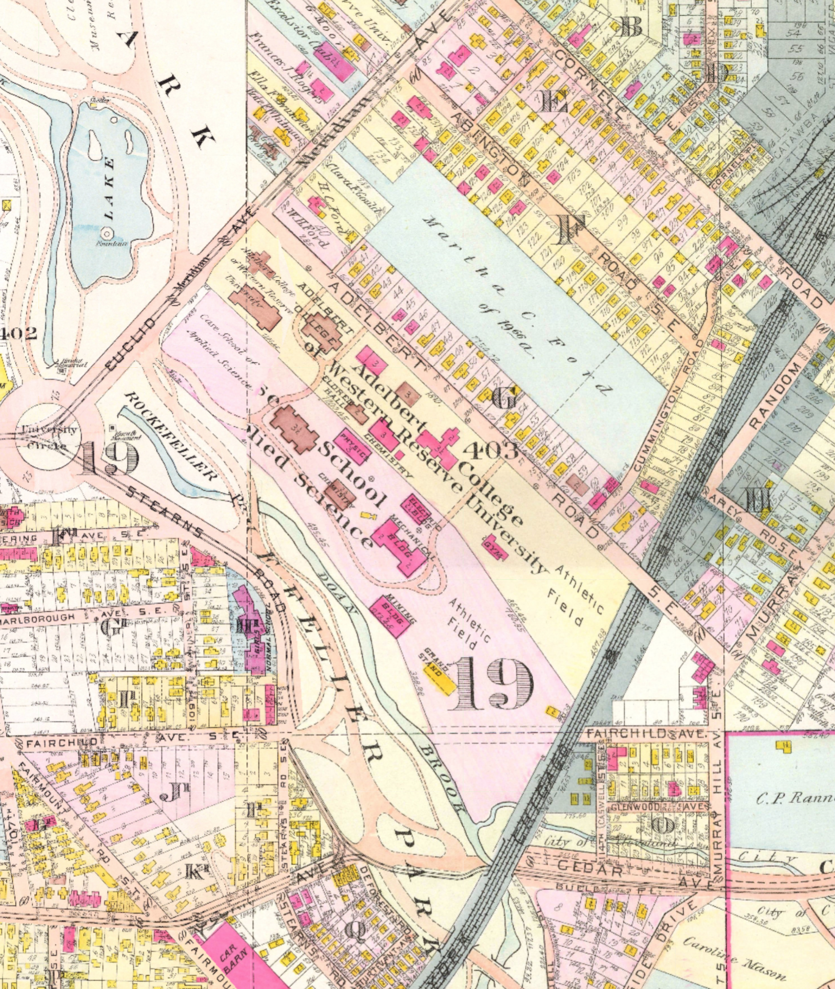 The Case and Western Reserve Campus, 1912 ID: 12324 | This file appears in: Van Horn and Clarke Fields The 1912 map delineates the two campuses and their athletic fields. | Date: 1912 | Source: Cleveland Historic Maps Download Original File SourceCleveland Historic MapsDate1912 "The Case and Western Reserve Campus, 1912" appears in: Van Horn and Clarke Fields