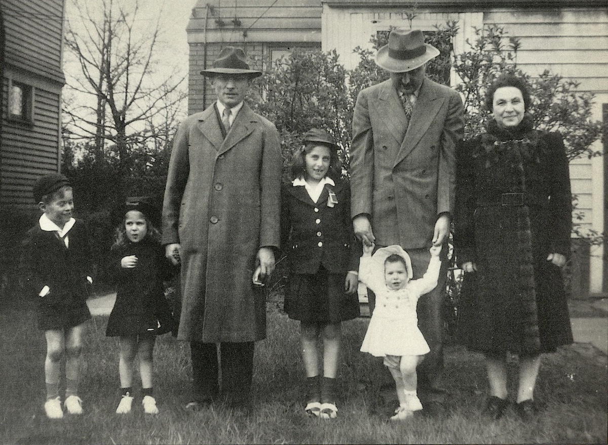 This photo taken in 1943 is of Irving Stone (taller man in photo), his children (l to r) Neil, Myrna, Hensha and Judy, and his parents Jacob and Jennie Sapirstein. It was taken in front of Jacob and Jennie Sapirstein's house at 823 East Boulevard in the Glenville neighborhood. The Sapirsteins moved from their two family home at 852 East 95th into this single family house in 1936. | Date: 1943 | Source: Cleveland State University, Michael Schwartz Library, Special CollectionsDownload Original File