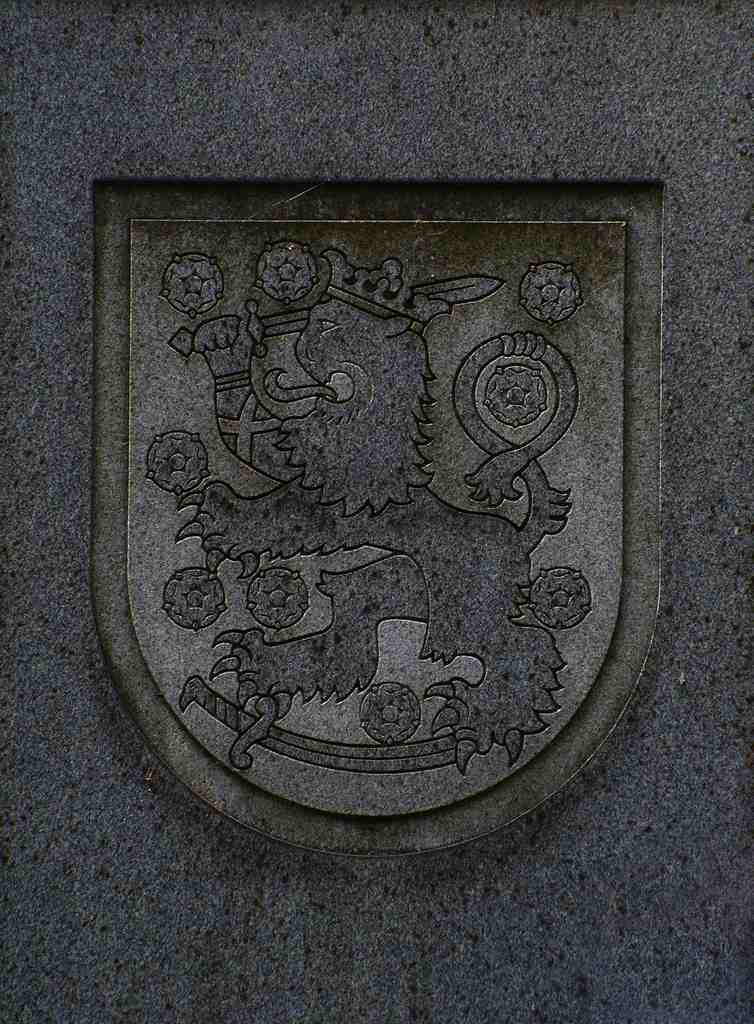 This coat of arms can be found on the Alexis Kivi monument at the Finnish Garden. | Creator: CSU Center for Public History + Digital Humanities