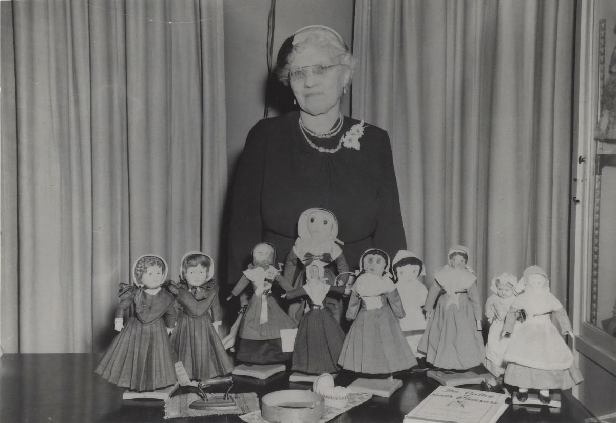 This photograph depicts Caroline Piercy with a collection of Shaker dolls. Piercy’s extensive knowledge and collection of Shaker items enhanced the society’s and community’s understanding of the North Union Shakers who once lived in Shaker Heights. | Source: Elizabeth B. Nord Memorial Library and Archives, Shaker Historical SocietyDownload Original File