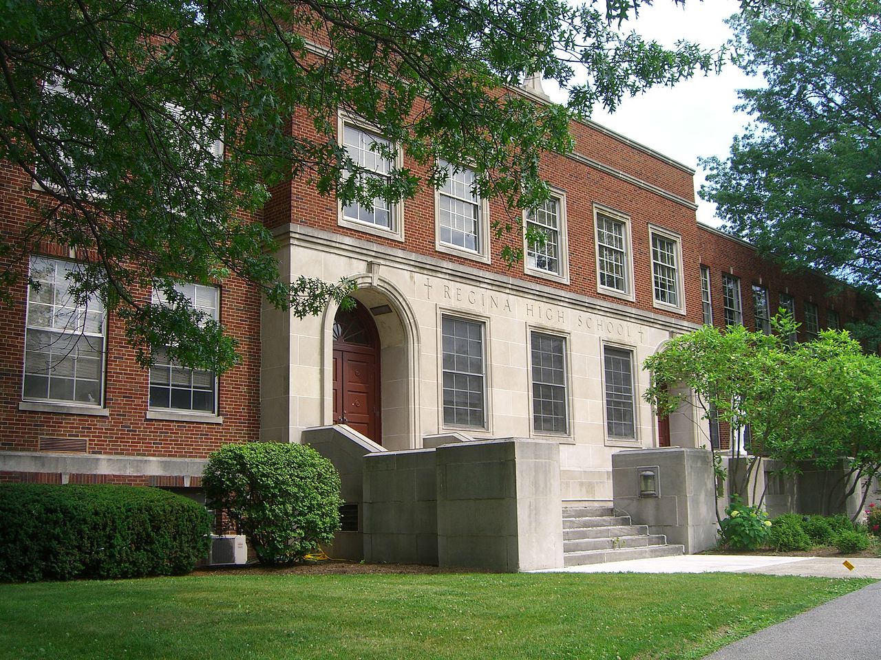 Regina High School ID: 12428 | This file appears in: The Sisters of Notre Dame The original building for Regina High School, an all-girls private high school, opened in 1954 and later turned into a building for classes on the campus of Notre Dame College. Download Original File "Regina High School " appears in: The Sisters of Notre Dame