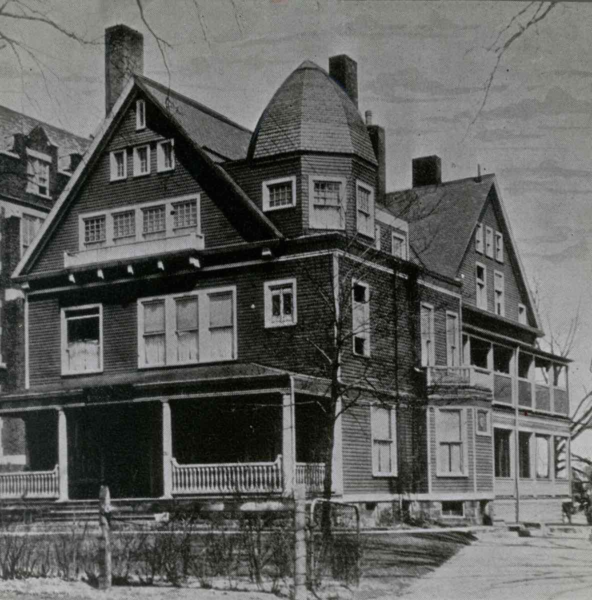 Notre Dame Academy opened in 1877 and moved to Ansel Road overlooking Rockefeller Park and Doan Brook in 1915. Notre Dame College originated as Notre Dame Academy seven years later. Quickly outgrowing its original home, the college acquired a farm in South Euclid to build a new campus in the mid-1920s. The house shown here was part of a campus that included the larger Gothic Revival school building to the left and three smaller structures. Today the main school building is operated by Famicos as apartments. | Date: ca. 1915 | Source: Cleveland Press Collection, Michael Schwartz Library Special Collections at Cleveland State UniversityDownload Original File