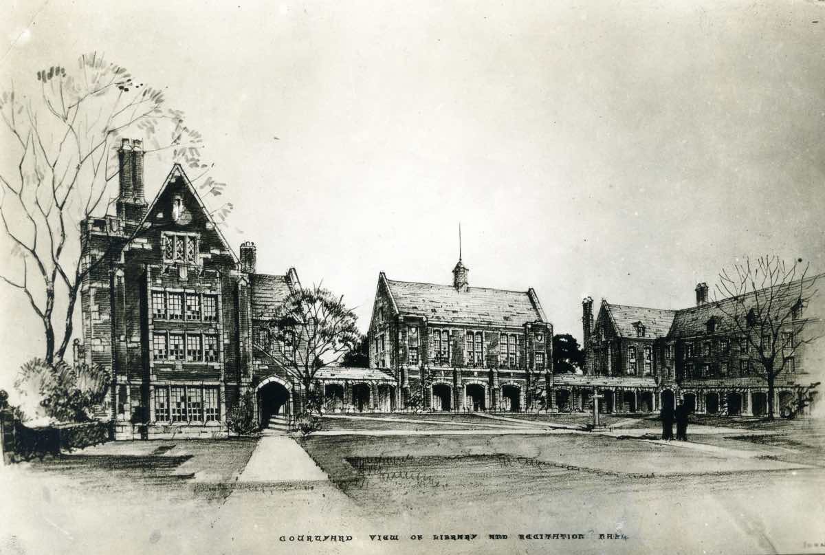 This rendering shows the Gothic Revival style of Notre Dame College's South Euclid campus. | Date: May 28, 1927 | Source: Cleveland Press Collection, Michael Schwartz Library Special Collections at Cleveland State UniversityDownload Original File