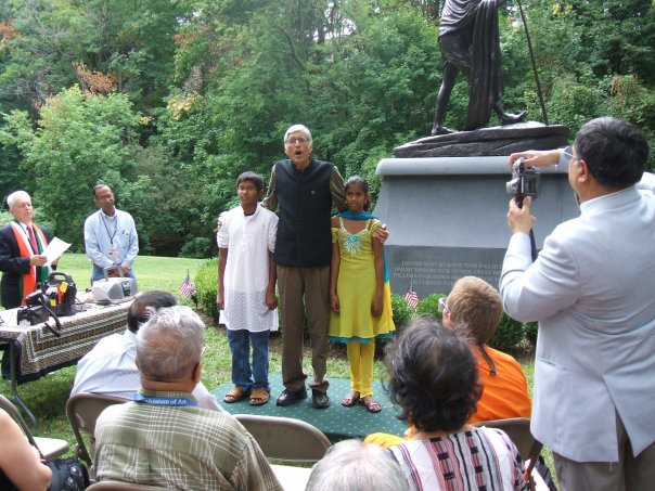 Professor Rajmohan Gandhi, grandson of Mahatma Gandhi, attends a tree planting ceremony at the India Cultural Garden in September 2008.