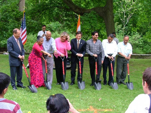United States Representative Dennis Kucinich (center), Mayor Jane Campbell, and representatives from the Indian community in Cleveland break ground on the India Cultural Garden in May 2005.