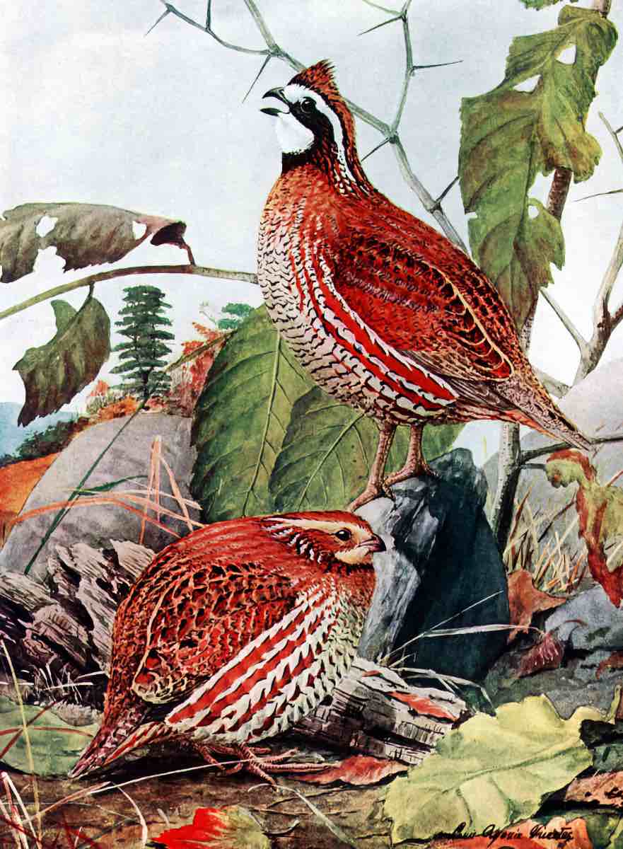 The Northern Bobwhite, or Virginia Quail, has an extensive native range from southern Ontario to southern Mexico and from the Atlantic coast to the Rocky Mountains. By the late 19th century, quail hunting for sport became a widespread activity in many states, including Georgia. The longleaf and loblolly pine forests of southwestern Georgia became especially prominent as hunting grounds as a result of Thomasville's reputation as a leading winter resort before Florida coastal resorts eclipsed it. In 1970, the Georgia General Assembly designated the Northern Bobwhite as the official game bird of Georgia. However, in Georgia and throughout its range, the quail's populations have dropped by more than 75 percent since that time as a result of multiple factors ranging from overhunting to habitat loss from land-use changes and pesticide use. | Creator: Louis Agassiz Fuertes | Date: ca. 1910s | Source: Wikimedia CommonsDownload Original File