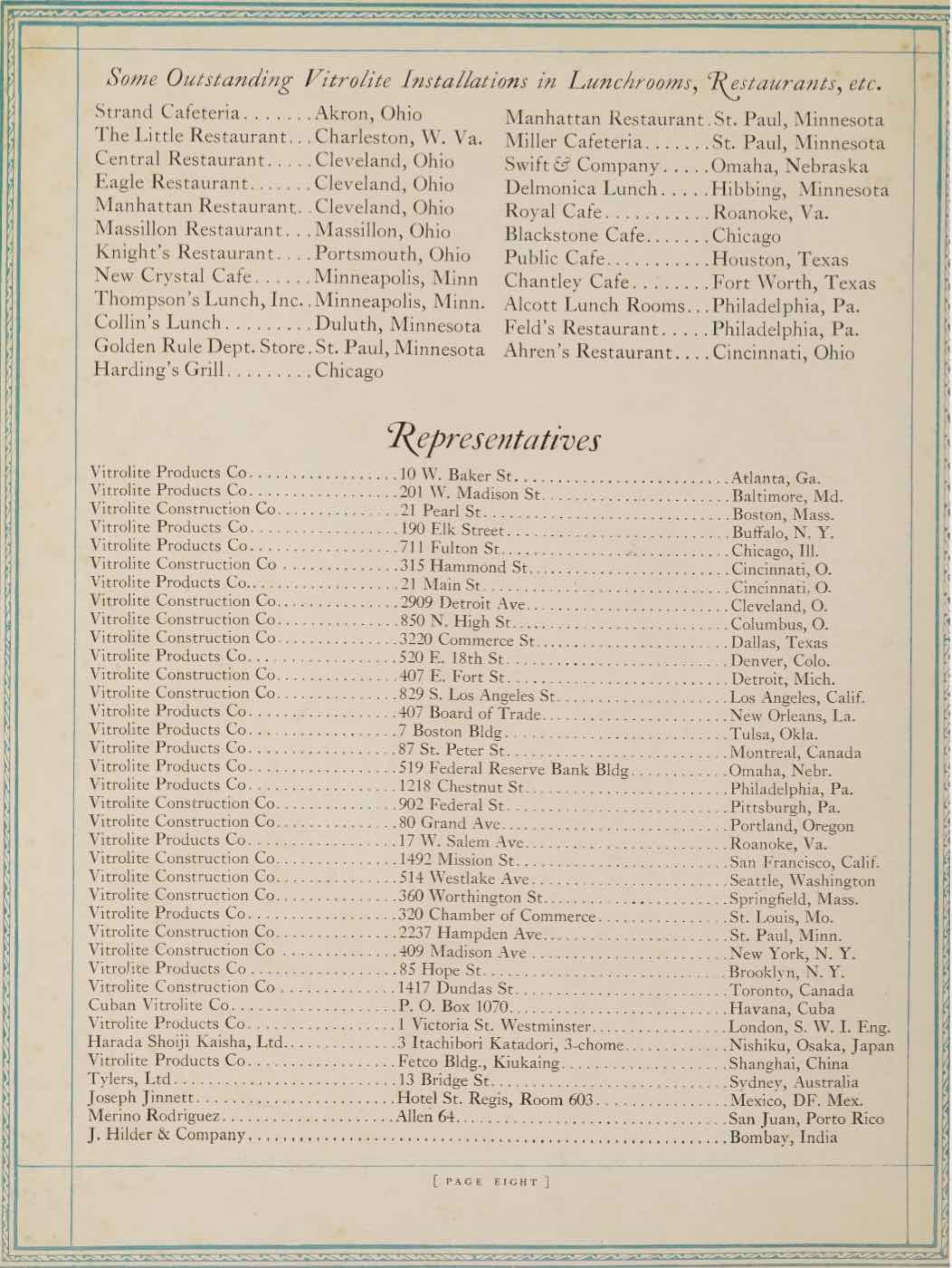 "Installations and Local Offices and Showrooms" appears in: The Vitrolite