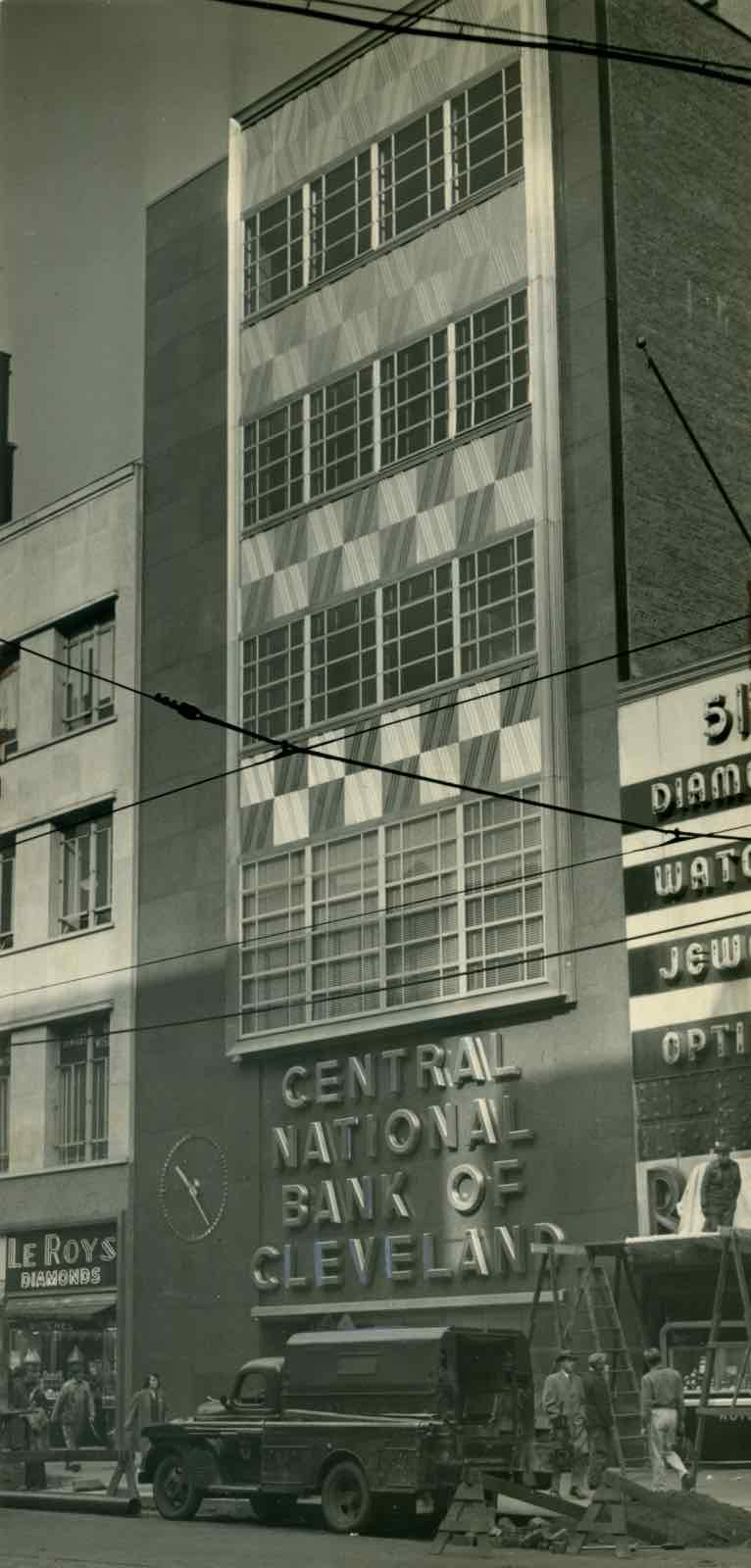 This photo was taken a few days before the new Euclid Avenue Office opened. It accompanied the Cleveland Press article whose title, "Modernity Prevails as Motif at New Central National Bank," inspired this story's subtitle "Modernity Prevails." | Creator: Cleveland Press | Date: October 27, 1948 | Source: Cleveland Press Collection, Michael Schwartz Library Special Collections at Cleveland State UniversityDownload Original File