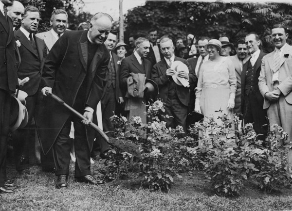 Dedication, 1933 ID: 1273 | This file appears in: Irish Cultural Garden The caption for this 1933 photograph reads: "A scene at the inauguration of the Irish Cultural Garden in Rockefeller Park yesterday. Rev. E. A. Kirby of St. Cecelia's Church is planting Killarney rose bushes, shipped directly from Ireland." Image courtesy of Cleveland State Library Special Collections Download Original File "Dedication, 1933" appears in: Irish Cultural Garden