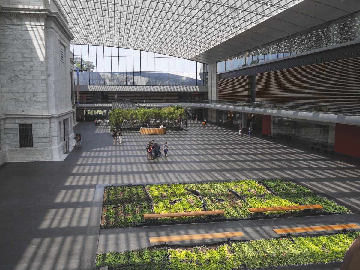 Part of a $350 million expansion undertaken in the 2000s-10s, the Atrium provides a huge, all-season space for special events, including Friday night MIX at CMA themed social gatherings intended to expand the museum's audiences. Escalators on either side whisk patrons between the first and second floors alongside the new art wings that flank the Atrium. The new wings enable the museum to display a broader selection of its ever-growing collection. A full-service restaurant and food stations line one side of the Atrium, which includes seating beside a peaceful bamboo grove. | Creator: Adam Jaenke | Date: July 9, 2019 | Source: Cleveland Public Library, Photograph CollectionDownload Original File