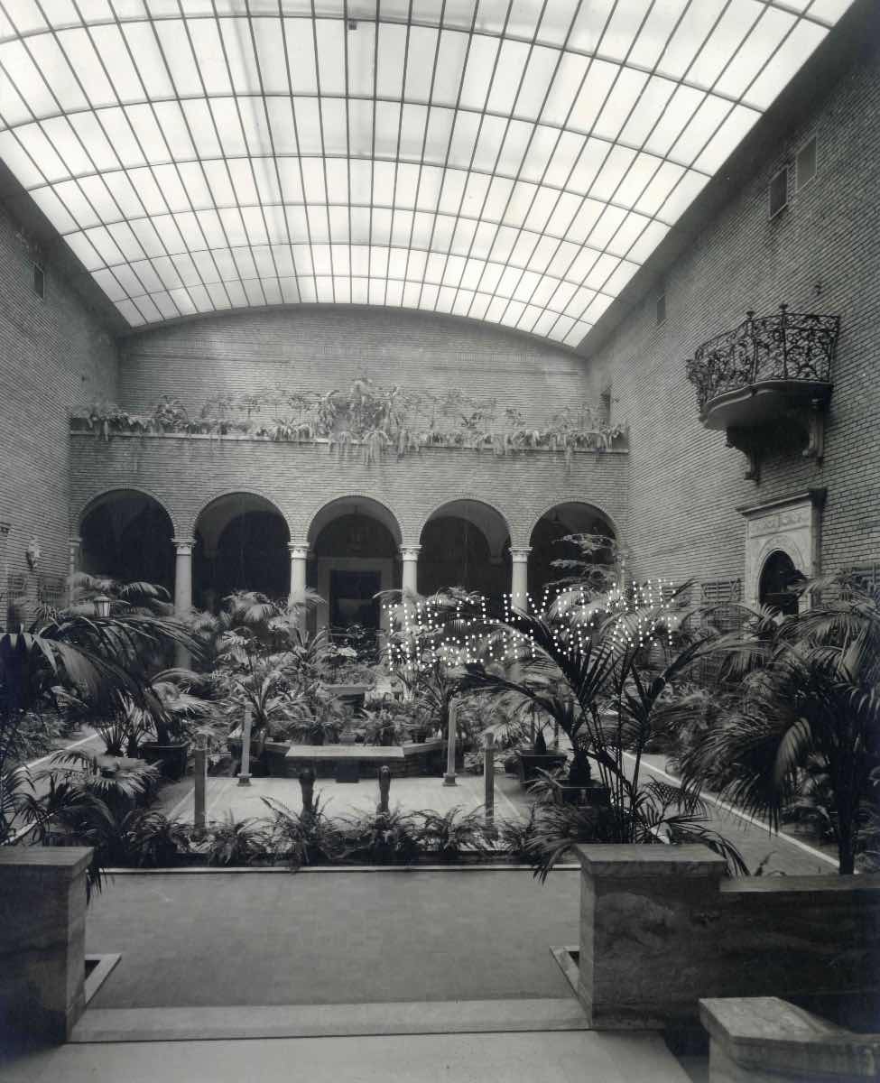 The Garden Court was located in the northwest corner of the museum. The interior space had a fountain pool, palms, and tropical foliage. As part of a major renovation in 2008, it became a gallery of Italian painting and sculpture. | Date: 1920 | Source: © Cleveland Museum of Art Archives