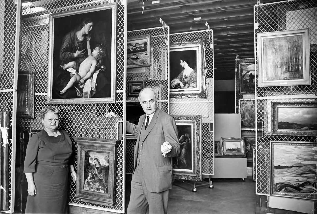 Emery May Holden Norweb (left), president of the Cleveland Museum of Art, and Sherman Lee, CMA's third director, examine some of the paintings in the museum's collection. Norweb became the first woman president of CMA in 1962. Lee served as CMA's director from 1958 to 1983 and was noted for his significant expansion of its Asian art collection. | Creator: Frank Reed | Date: January 24, 1966 | Source: Cleveland Memory, Michael Schwartz Library Special Collections at Cleveland State UniversityDownload Original File
