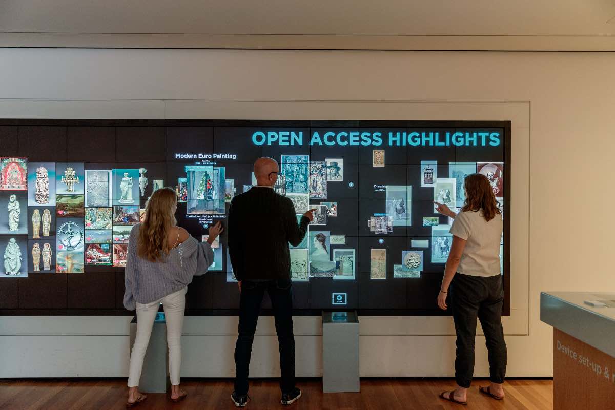 In 2012, CMA opened Gallery One, a gallery featuring large touchscreen wall (with an associated mobile app that enables users to access and learn about thousands of artworks) to encourage patrons to interact with the collection. Since that time, the wall and gallery have undergone both transformations and smaller refinements to enhance the user experience. Since 2019, the space has been called ArtsLens Exhibition, an immersive experience that encourages a balance between interactivity and deeper dives into art education. | Creator: Cleveland Museum of Art (CC-BY) | Date: August 6, 2019 | Source: Wikimedia CommonsDownload Original File