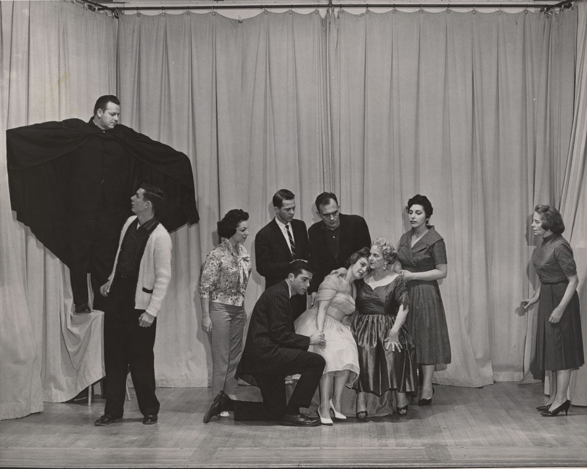 A dress rehearsal photo of the production "Death Takes A Holiday" by the Shaker Players in 1960. | Date: 1960 | Source: Shaker Historical Society
