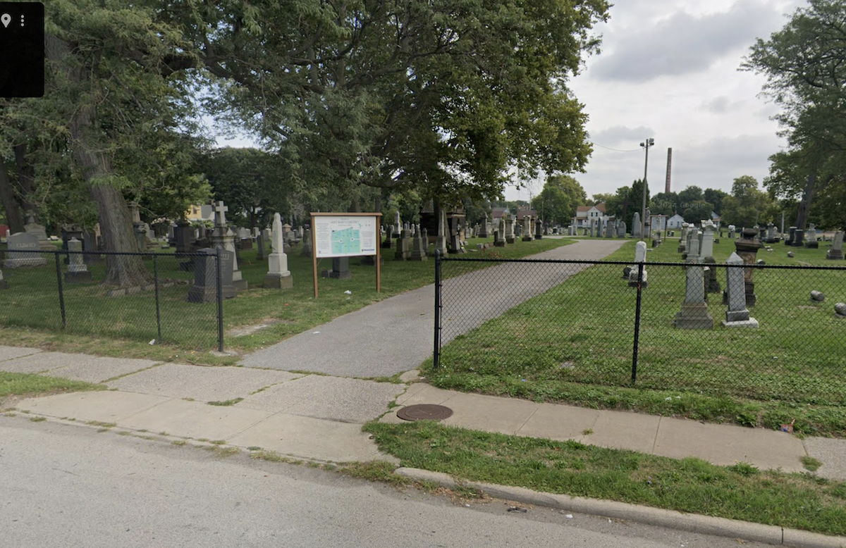As of October 2025, there is no gate at either the West 41st or West 38th entrance to St. Mary Cemetery. This photo of the West 41st Street entrance was taken in 2024. | Date: 2024 | Source: Google MapsDownload Original File