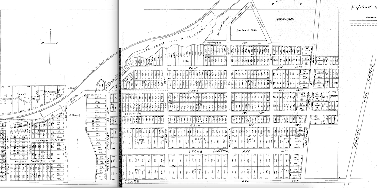 This is a plat map of Hiram Stone's 1853 subdivision of lands then located in Brooklyn Township, just south of Ohio City. Today, the lands lie on the west side of Cleveland. | Date: 1853 | Source: Cuyahoga County online deed and plat recordsDownload Original File