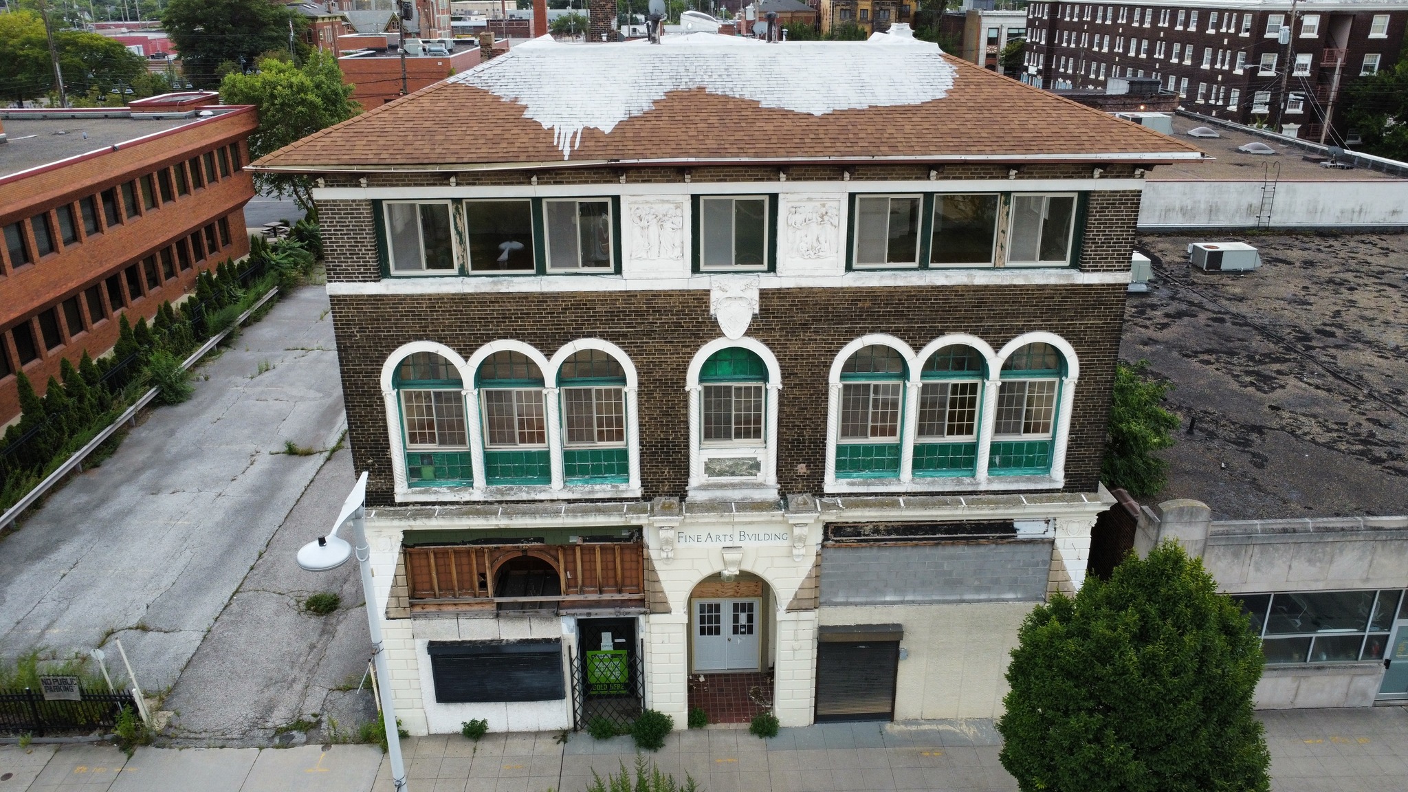 Aerial View ID: 12896 | This file appears in: Fine Arts Building Recent aerial photo of the front of the Fine Arts Building | Creator: Dorjan Scott | Date: 2024 Download Original File CreatorDorjan ScottDate2024 "Aerial View " appears in: Fine Arts Building