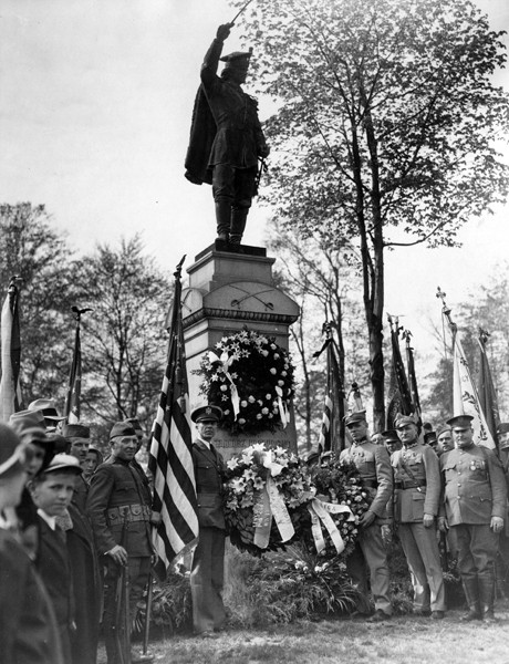 The Polish community in Cleveland often gathered at the Tadeusz Kosciuszko memorial. This particular memorial is not located in the Polish Cultural Garden but in the nearby Wade Park, just west of the Cleveland Museum of Art. Erected in 1905, it honors the Polish national hero and American Revolutionary War Colonel. This photograph shows a 1938 wreath laying ceremony.