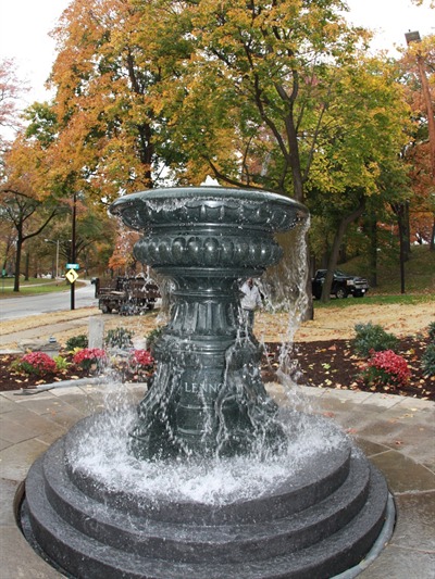 A granite fountain donated in memory of manufacturer and philanthropist Fred. A Lennon was installed in the northern extension of the Irish Garden in 2010. The fountain replicates the St. Patrick's Well fountain of St. Patrick's Park in Dublin, Ireland. The original St. Patrick's Well fountain is said to be the approximate site where St. Patrick reputedly baptized the first Irish Christians.