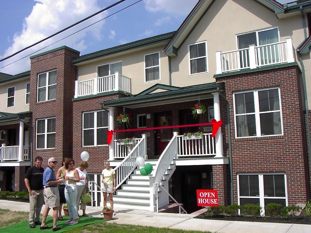 The development of Cleveland's EcoVillage, rooted in the concept of creating an environmentally friendly urban landscape within walking distance of a mass transit system, has prompted the construction of "green" townhouses and single family homes on lots previously inhabited by deteriorating structures. | Source: Detroit Shoreway Community Development Organization