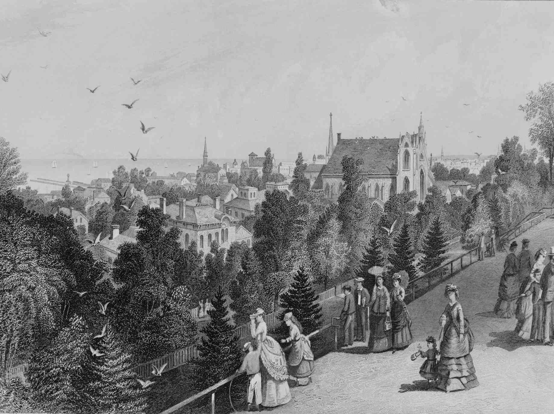 The 6 million gallon reservoir rose 35 feet above street level. Steps led to a walkway at the reservoir's top, which became a popular promenade affording scenic views of the entire city. The reservoir, however, soon became too small to meet the needs of the growing city. The site became a public park in 1890 and took on its current name -- Fairview Park -- in 1897.