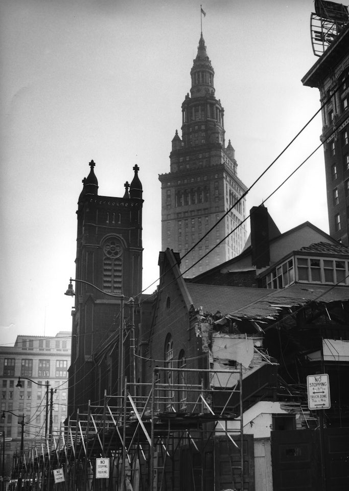 Old Stone Church's Parish House and chapel, which was constructed around 1890, were razed as part of the congregation's "Forward March" campaign in 1961. The $1,250,000 new Parish Hall included a chapel for children, a large chapel, a 700 person dining hall, and church offices. The new structure allocated spaces for outreach programs and public ministry in an effort to combat the many economic and social problems that the city experienced because of suburbanization.