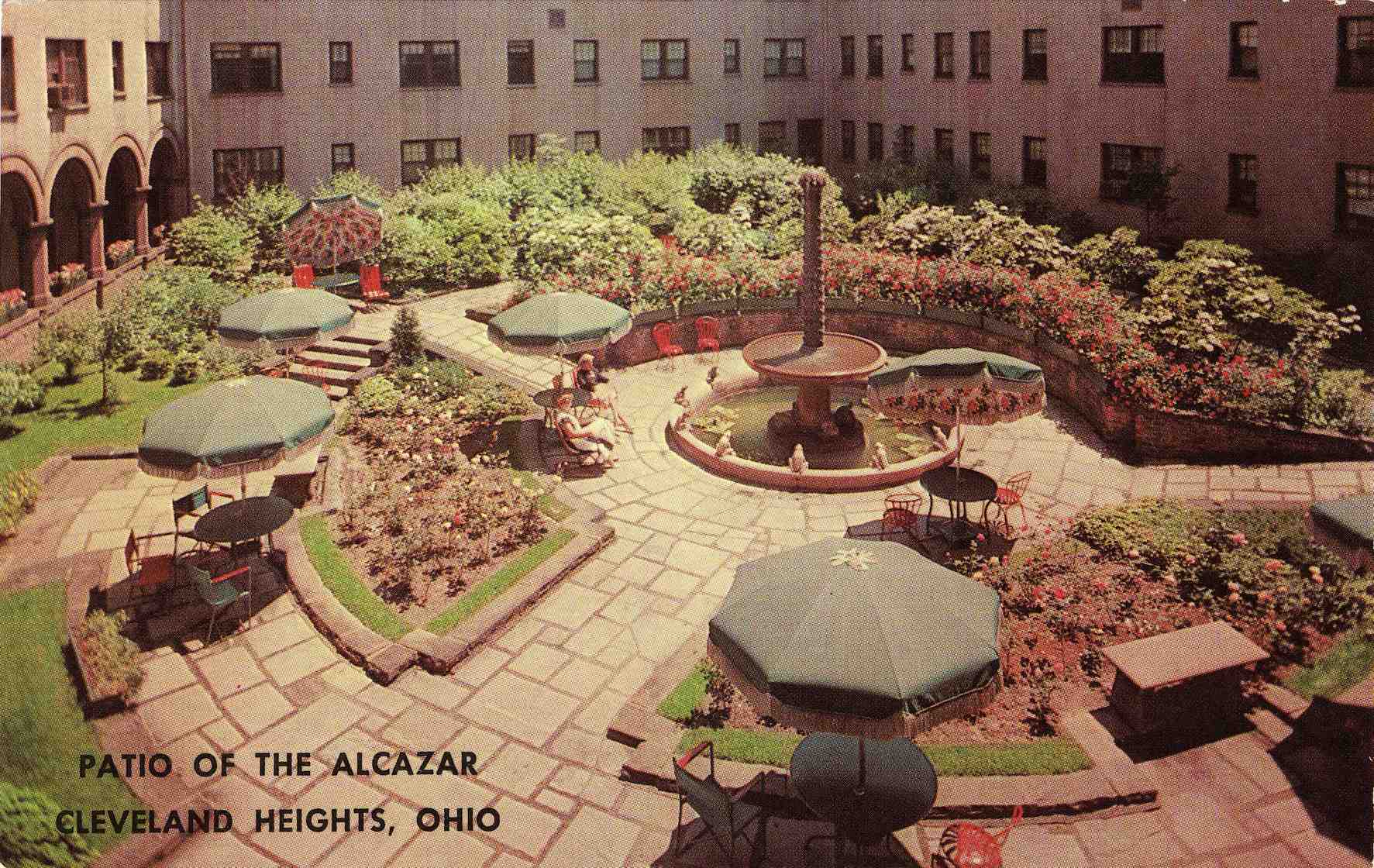 This postcard of the center courtyard at the Alcazar Hotel appears to be from after the hotel had been sold and turned into a retirement home for seniors. The circular fountain at the center of the image is a replica of one which sits at the Hotel Ponce de Leon in St. Augustine, Florida. | Source: Cleveland Memory Project, Cleveland State University Library Special CollectionsDownload Original File