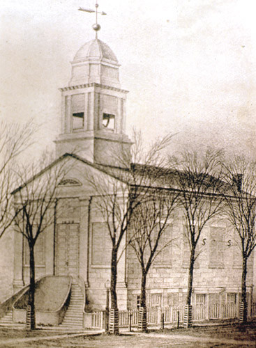 First Presbyterian Church derived its nickname from the original structure built on Public Square in 1834. Made of hammered gray sandstone, the building was commonly referred to as the stone church. Over the years, as additional stone churches were constructed throughout Cleveland, the First Presbyterian Church would take on the name "old stone church".