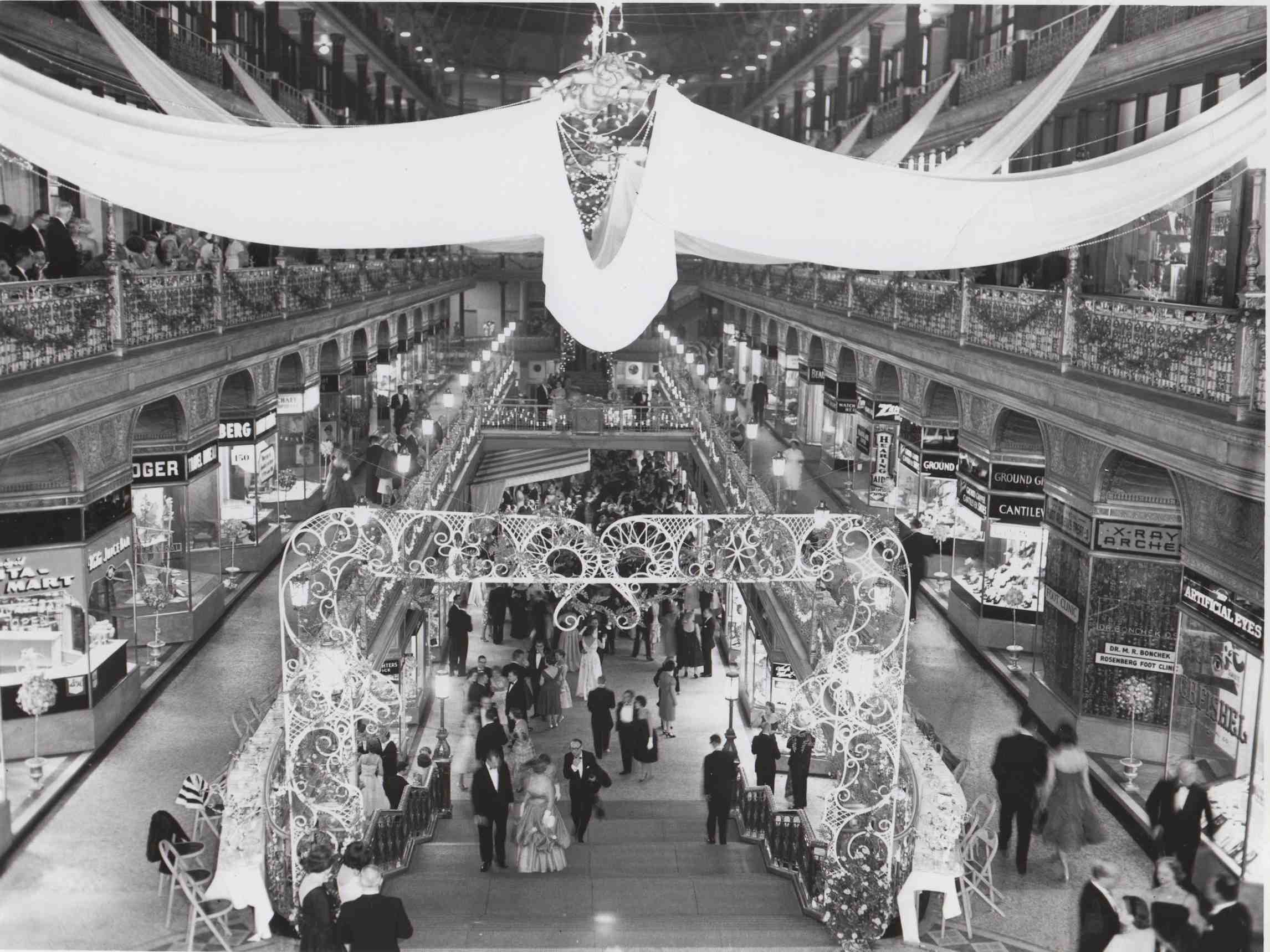 The Showboat Ball at the Arcade, sponsored by the Musical Arts Association, raised over $5,000 for the Cleveland Orchestra. The event, attended by some 700 people, marked the first time that the Arcade had been used to hold a ball since the 1895 National Republican League event. | Date: Jan. 1961 | Source: Cleveland Memory Project, Cleveland State University Library Special CollectionsDownload Original File