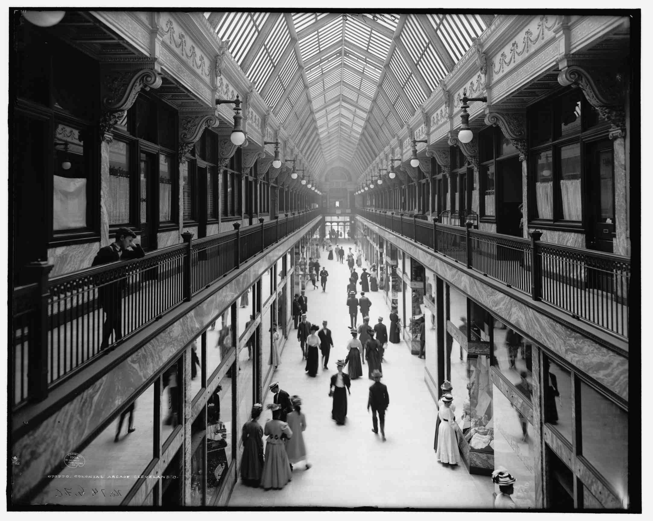 Colonial Arcade, 1908 ID: 2070 | This file appears in: 5th Street Arcades Shoppers fill a sun-lit Colonial Arcade in 1908 as a boy looks on from the second floor balcony. | Source: Library of Congress Download Original File SourceLibrary of Congress "Colonial Arcade, 1908" appears in: 5th Street Arcades