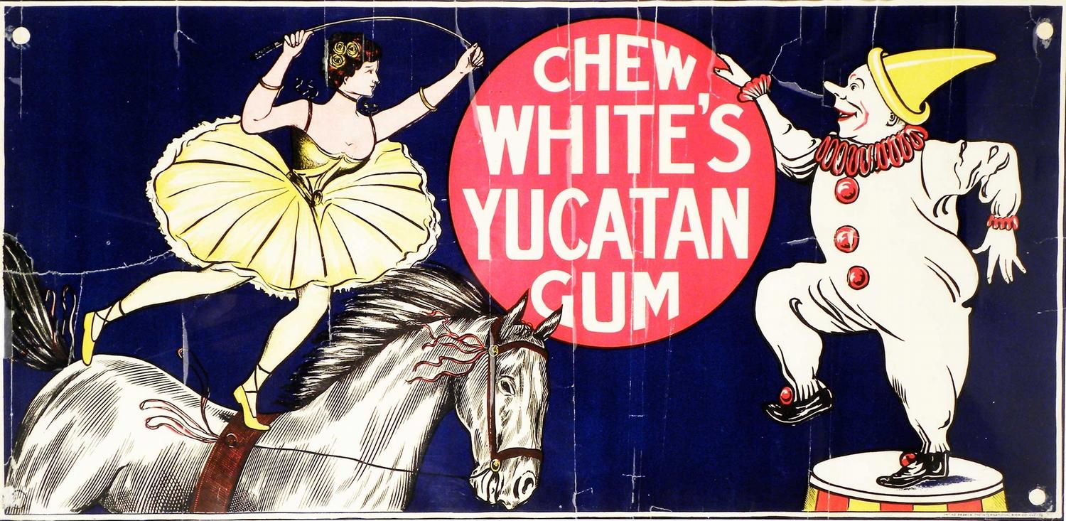 White's Yucatan Gum Ad, Ca. 1900s ID: 2086 | This file appears in: New Amsterdam Hotel This fanciful circus scene, which advertised White's most noted creation, was a fitting expression of "the Chewing Gum King's" showmanship. | Creator: International Sign Co., Cleveland, Ohio Download Original File CreatorInternational Sign Co., Cleveland, Ohio "White's Yucatan Gum Ad, Ca. 1900s" appears in: New Amsterdam Hotel