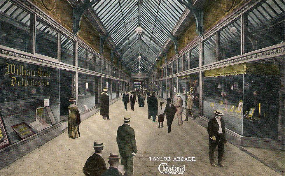 The Taylor Arcade opened in 1907 in conjunction with the opening of the new Taylor store at 630 Euclid Avenue. The arcade, which ran between Euclid and Prospect Avenues, sat just to the west of the new store and just to the east of the Euclid and Colonial arcades. While the department store always owned the arcade, at first it rented out retail space in it to over 40 different shop owners. In the 1930s, however, the store expanded and took over the space for its own use.