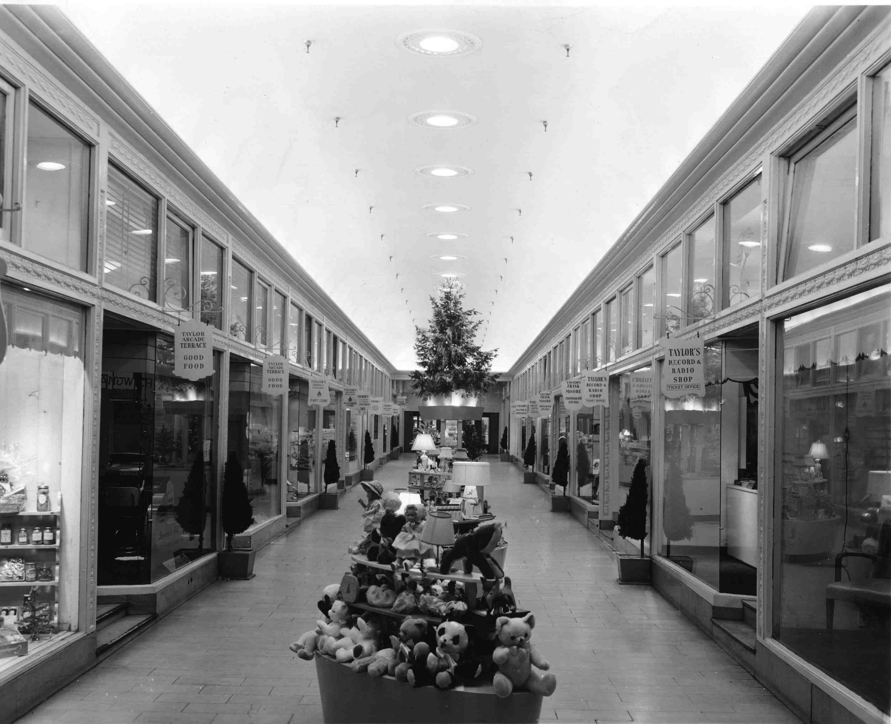 The Taylor Arcade was remodeled in the 1930s as part of Taylor's modernization program. Some of the details remain, such as the detailing above and below the windows, but the iron and glass sky-lit roof has been replaced by a more traditional looking ceiling. The arcade was demolished in the mid 1960s when Albert A. Levin converted the empty Taylor Building into office space.