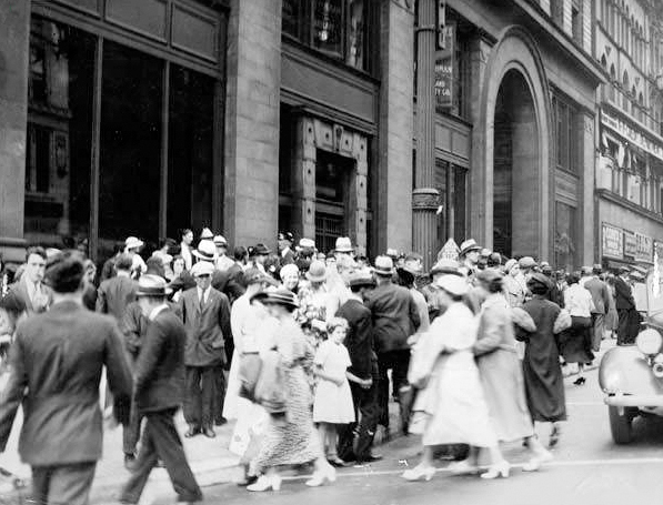 Despite the fact that Cleveland, like other cities, suffered major setbacks during the Great Depression, Downtown remained an active and popular destination. | Date: 1934 | Source: Cleveland Memory Project, Cleveland State University Library Special CollectionsDownload Original File