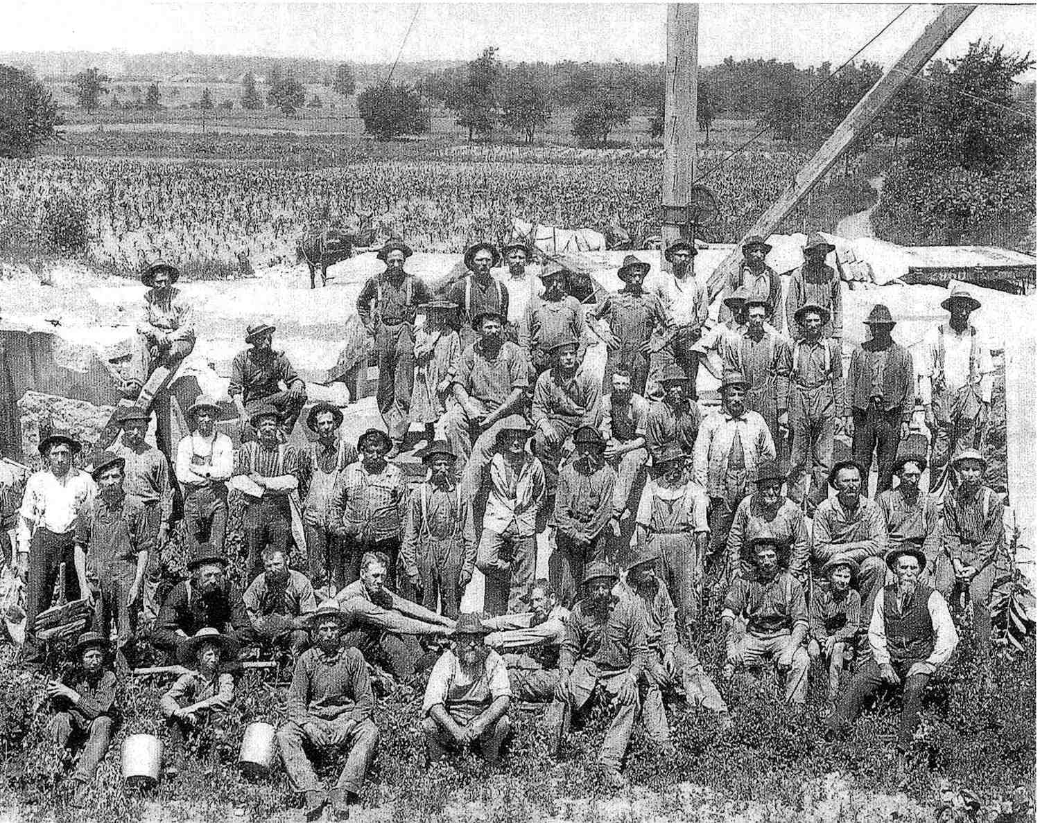 Nichol Quarry Workers, ca. 1900 ID: 2245 | This file appears in: Amherst's Quarries Workers at the Nichol Quarry, located on the eastern portion of North Ridge Road, pose for a photograph, circa 1900. Note the range of ages, including the young water boys. | Date: ca. 1900 | Source: Amherst Historical Society Download Original File SourceAmherst Historical SocietyDateca. 1900 "Nichol Quarry Workers, ca. 1900" appears in: Amherst's Quarries