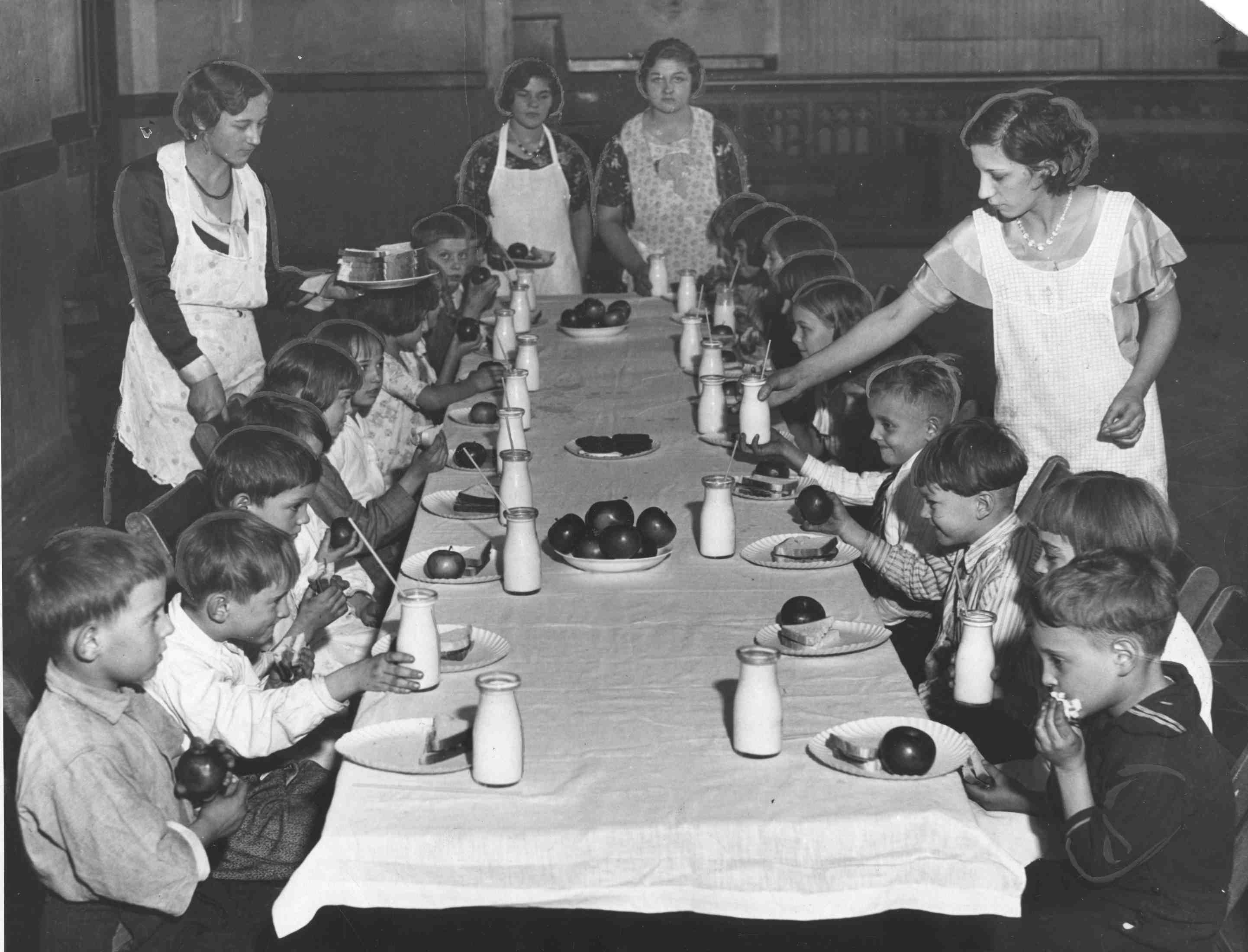 Feeding the Hungry, 1931 ID: 2504 | This file appears in: Slovenian National Home During the Great Depression and at other times throughout its history, St. Vitus has provided meals to undernourished children from the community. Eighth grade girls from St. Vitus school are serving the youngsters in this photograph from 1931. Image courtesy of Cleveland State Library Special Collections Download Original File "Feeding the Hungry, 1931" appears in: Slovenian National Home